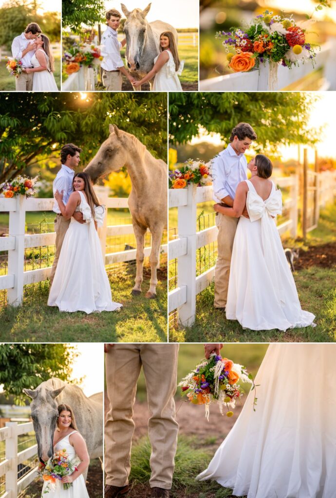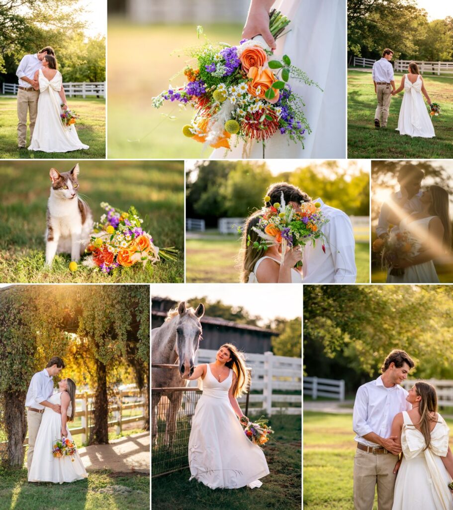 These two lovebirds live in a charming caretaker’s cottage on a dreamy farm just outside of San Antonio. Their daily life? Taking care of adorable animals and soaking up the kind of countryside vibes that make you want to stay forever. When I found out they were living here, I was like, “We HAVE to do a styled shoot. This place is magic!” So, we set up an after-wedding shoot to capture their newlywed glow in the most idyllic setting.