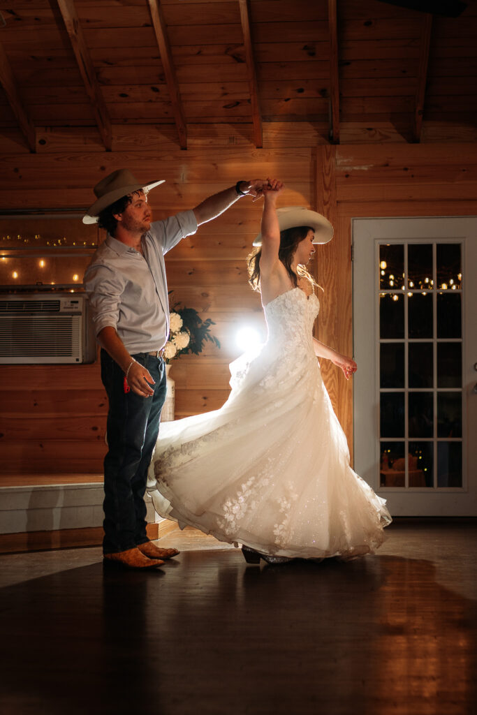 And then the reception happened in the cafeteria. The same cafeteria that has seen a thousand summers hours, a thousand first friendships, a thousand kids who didn’t want to go home at the end of August. Makenna and Joseph danced in it like it was always theirs. K&C Event Planning pulled the whole thing together beautifully, Brenham Wildflowers Florist brought the color, 38 Cakes brought the cake, and Tin Roof BBQ fed everyone the right way. It was warm and loud and full of people who love these two completely.